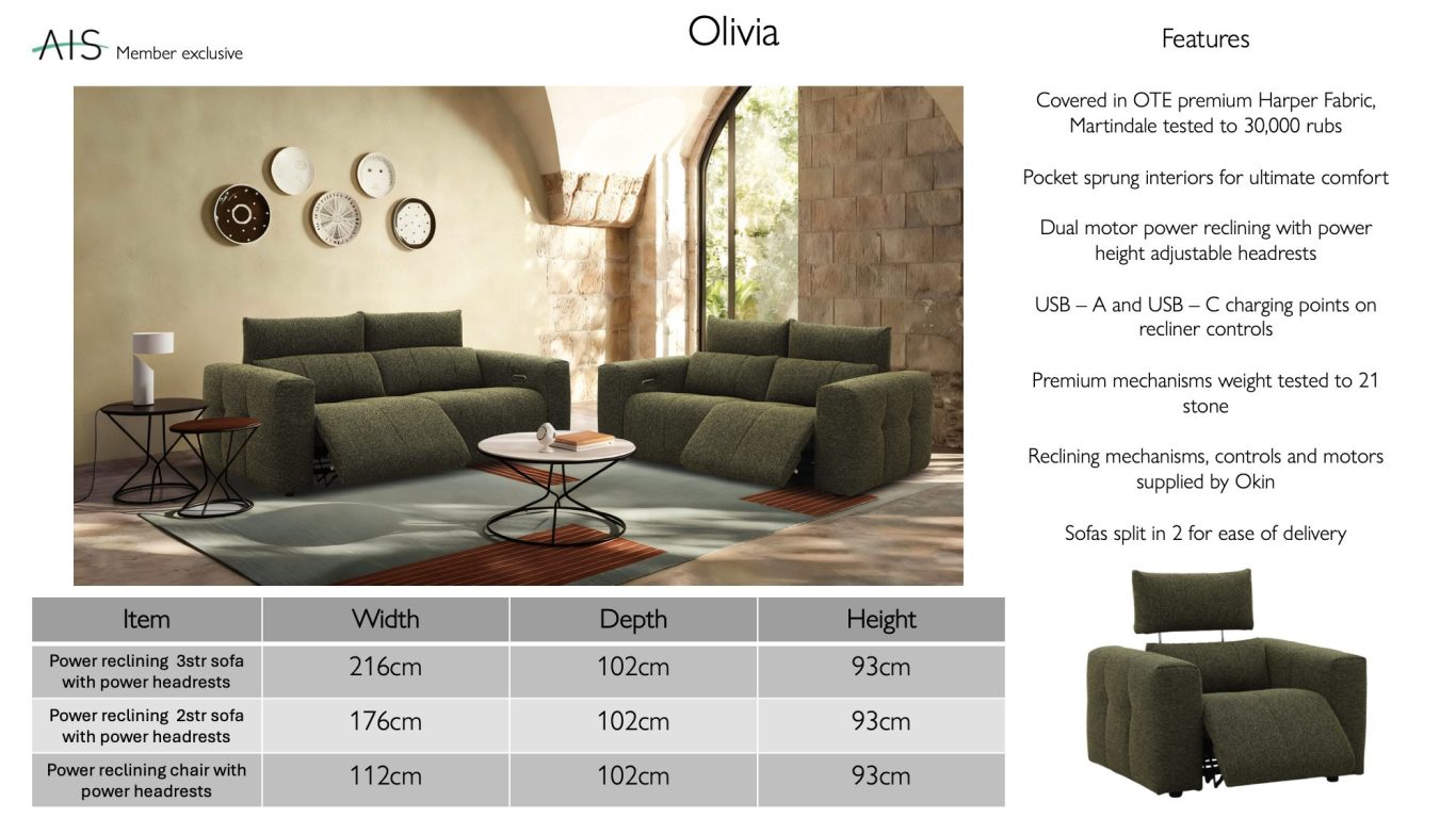The Olivia range is crafted for those who expect more from their living space—an AIS Buying Group member exclusive that blends refined design with exceptional comfort. Wrapped in premium OTE Harper fabric, Olivia introduces a quietly luxurious aesthetic, inviting you to sink into a world of tailored relaxation.