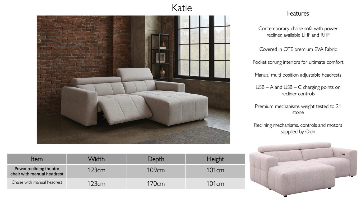 At the heart of Katie’s experience is a smooth electric power‑reclining mechanism crafted by German manufacturer OKIN, delivering graceful, whisper‑soft motion that feels indulgent from the very first touch. Beneath the surface, pocket‑sprung interiors offer resilient, long‑lasting support, ensuring the seat retains its comfort and poise over time.